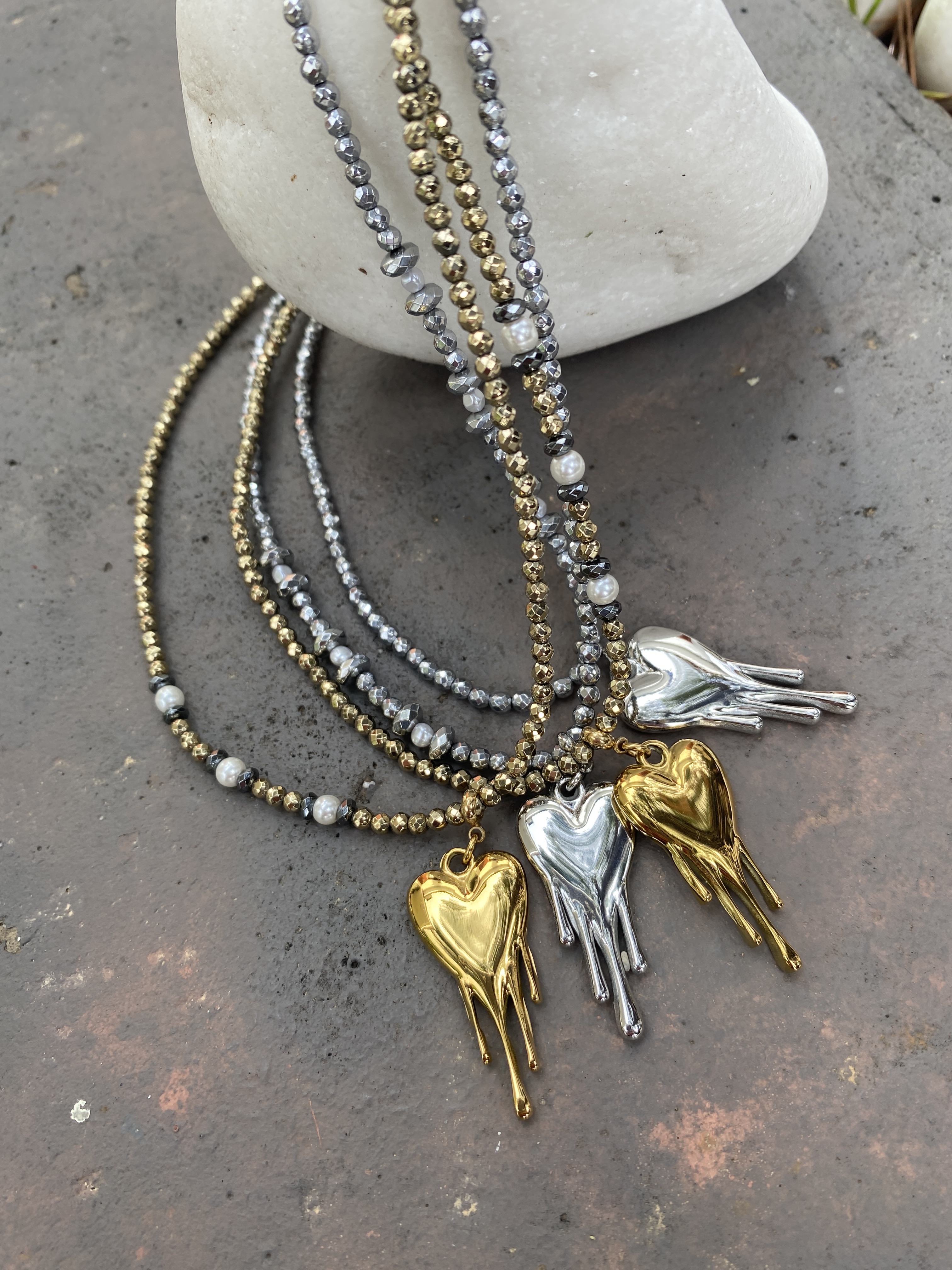 Το “Golden Melt Heart” συνδυάζει τη λάμψη των χρυσών και μαύρων αιματιτών με μια ατσάλινη καρδιά σε ρευστή, λιωμένη μορφή. Ένα κόσμημα που δεν περνά α..
